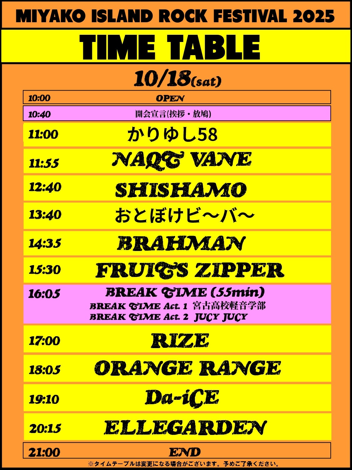 宮ロック2025 TIME TABLE 決定(9月17日更新)