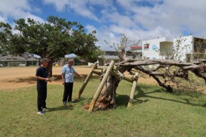 なかでも、いちばんショックだったのは、母校・平一小の校庭に立つガジュマルのうち一本が倒れ、撤去されることになったというニュースだ